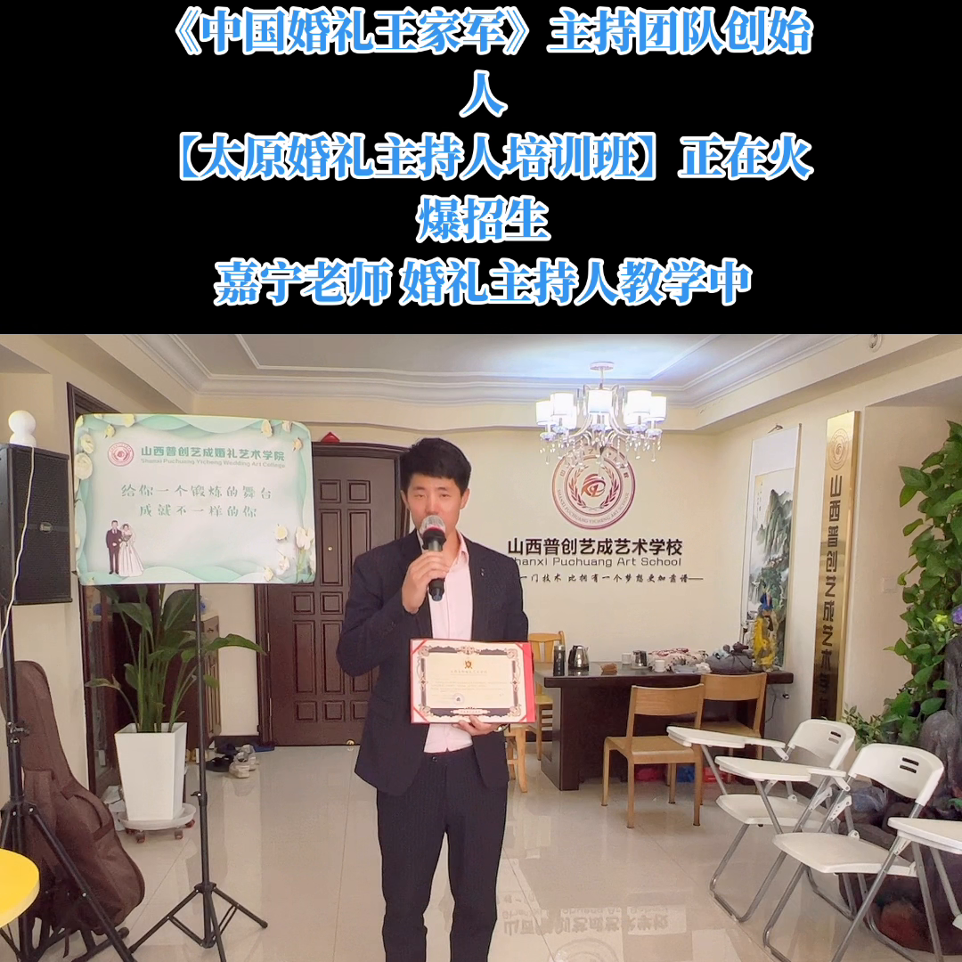 2023年《山西普创艺成婚礼学院》《中国婚礼王家军》主持团队创始人,太原婚礼主持人培训班正在火爆招生,嘉宁老师婚礼主持人教学中。