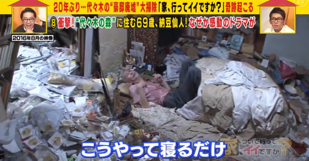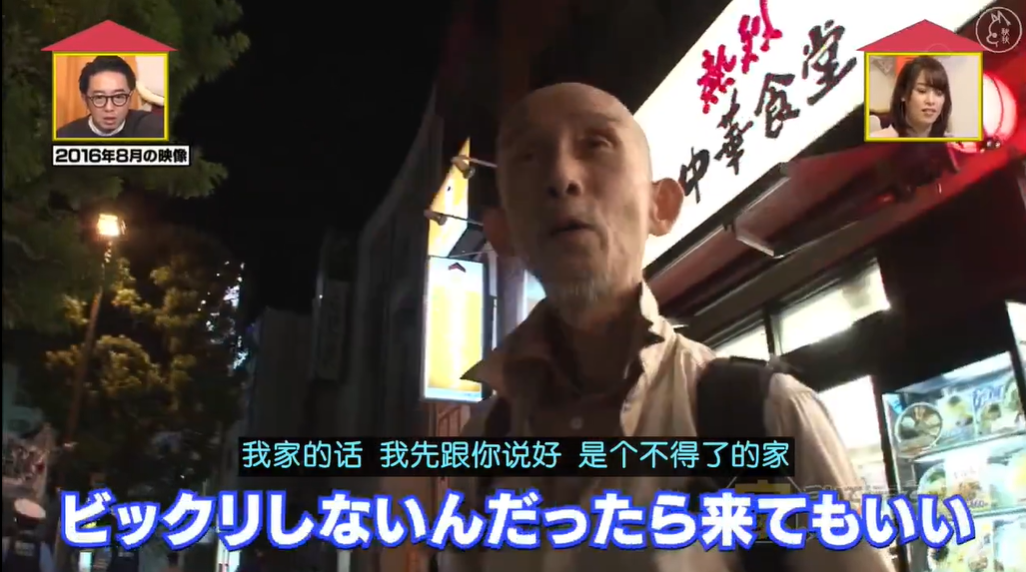 2016年节目组在东京小岩站附近发现了一名愿意带记者回家的老人。68岁的他独居在东京市中心的代代木区。听闻记者的要求有些讶异,他好心地“警告”记者:我家非常可怕哦。
