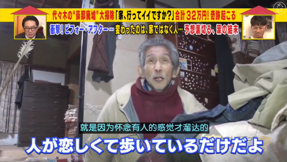 好心的节目组花了两天的时间里帮他处理掉了家里的1吨垃圾,花了32万日元清洁费。