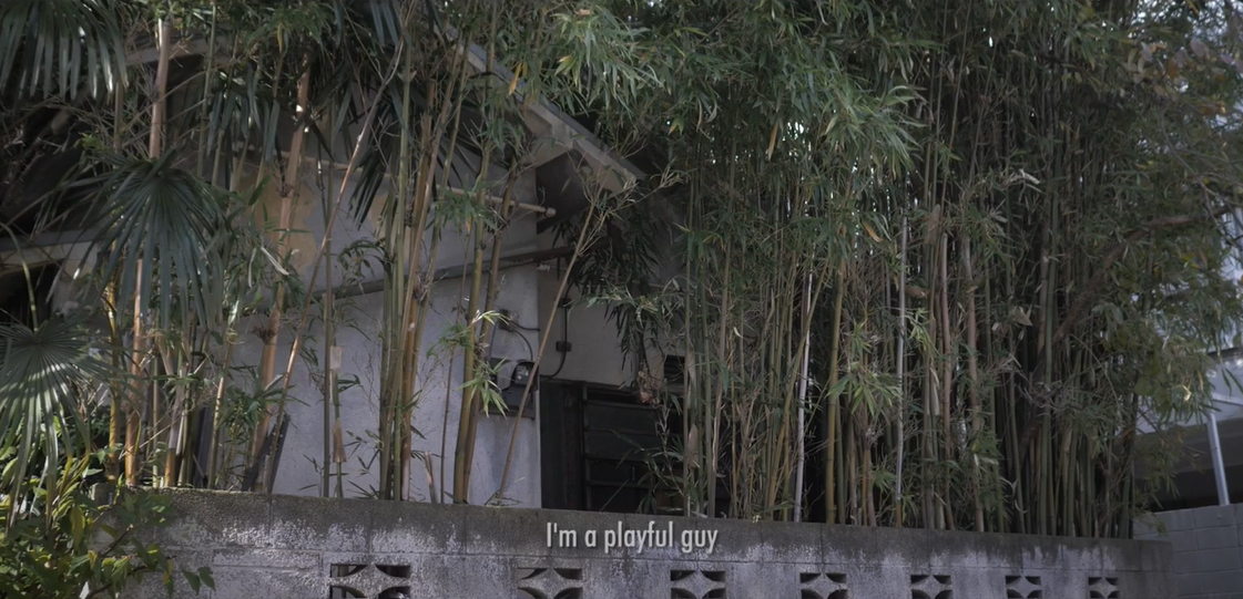 与他邋遢的生活完全相反的是他的开朗,他甚至有些自嘲式的幽默。他很开朗地承认自己是一个废物,他嘲讽自己住在垃圾堆里,打趣地跟节目组说“吃了这里的东西你身体还好吧”。