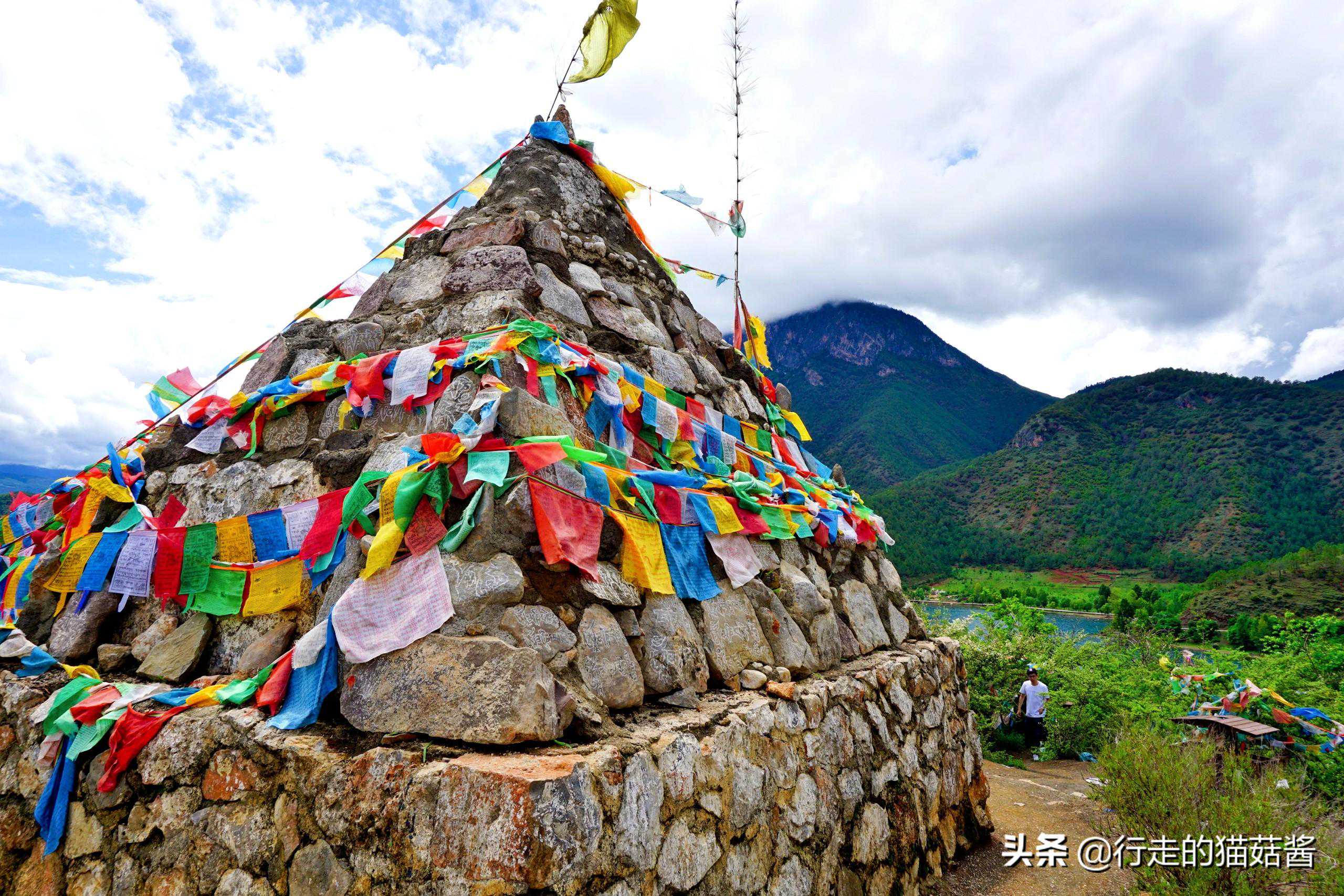 这里是泸沽湖的源头,此处地势较高,崖上有观景台可俯瞰泸沽湖美景,泸源崖挂满了五彩的经幡,因为摩梭人也信藏传佛教,所以在这里可以看到经幡和玛尼堆。