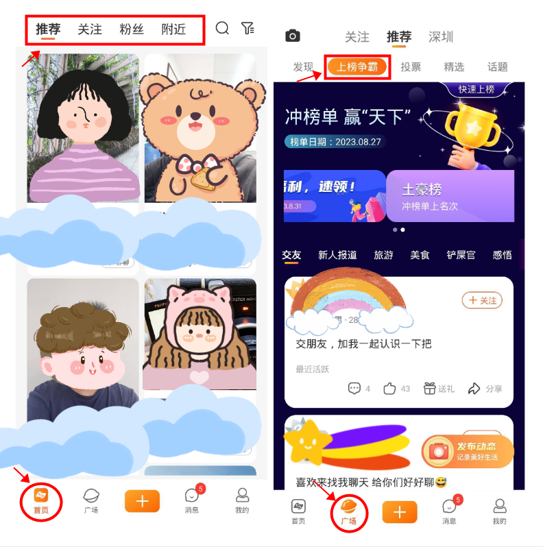 2.上榜争霸各类榜单移动到广场-推荐处。