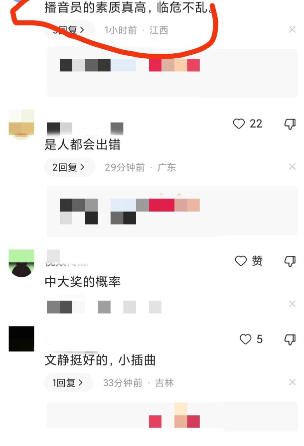“播音员的素质真高,临危不乱!”网友们开始称赞。
