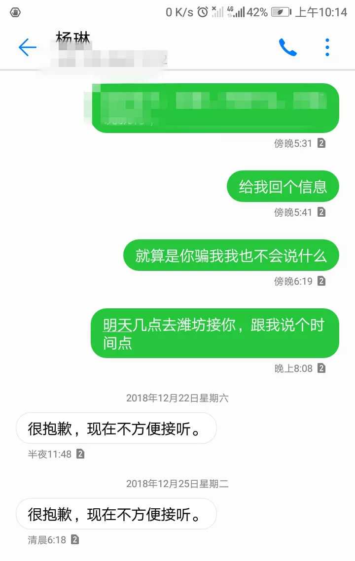 由于一直给女友转钱,一直处于“网恋”状态的李某,也对对方的身份产生过怀疑。李某便多次提出见面,杨琳每次都以“有时间我去找你”将李某搪塞过去。1月2日,他像往常一样联系女友杨琳时,却发现对方拉黑了自己所有的联系方式。