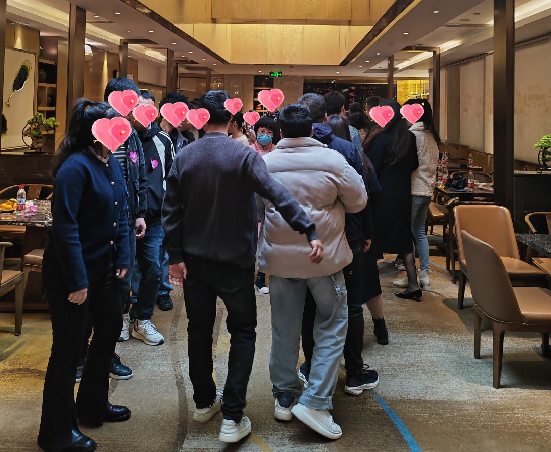 “桃花朵朵开”“抓鸭子”“爱的传递”20分钟的破冰游戏,打开了生涩的对话,让心动有迹可循。游戏中,不经意的搀扶和触碰,眼神的交汇和欢乐的笑声,拉近了彼此的距离,增加甜蜜的气氛。