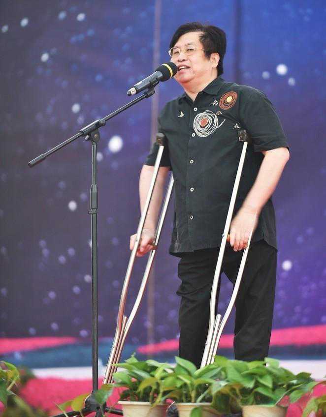 伤口愈合后,郑智化能够借助拐杖走路了。