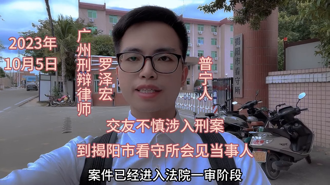 2023年10月5日,因交友不慎而涉入刑案,前往揭阳市看守所会见当事人。