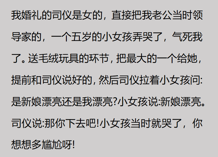 网友们在婚礼现场见到的司仪也是多种多样的,但是能凭借一己之力毁掉婚礼的其实也并不常见。