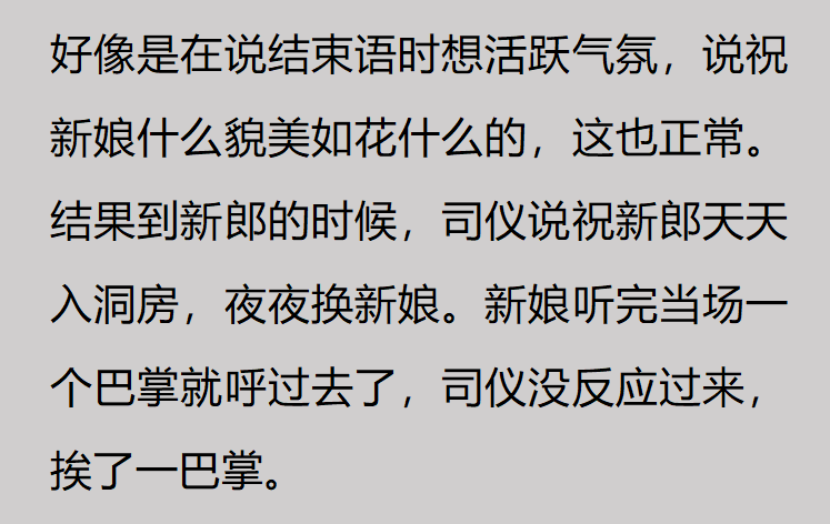 这个司仪以前是没有挨过揍对吗?