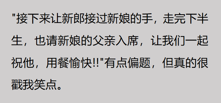 新郎是参加过相声培训吗?果然真诚就是必杀技。温馨提示