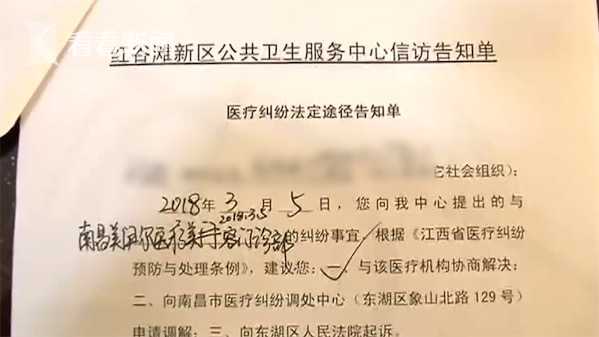 南昌市红谷滩新区卫生管理办公室蹇宾说:“还需要调解,她愿意跟医院再协商一次的话,我们愿意组织他们再协调一次,但是如果她想走正常的法律途径的话,比如说去做医学鉴定,我们会引导,比如说去法院起诉,我们都会引导。”