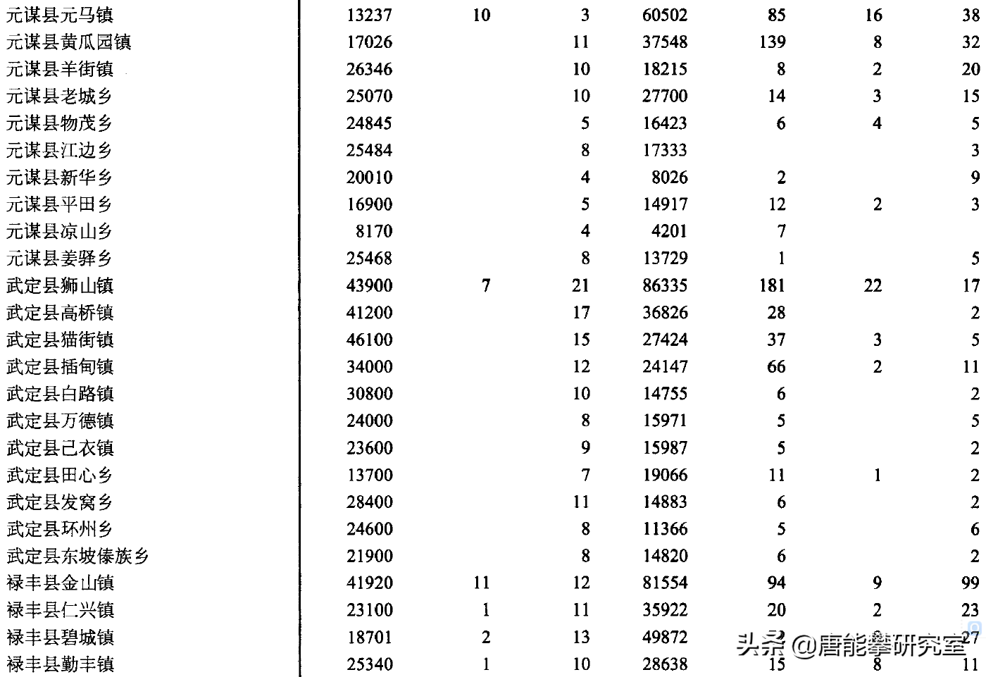 上面是各乡镇的户籍人口,不是7普的常住人口。本文数据如有疑问均以附图(表)为准。2021年2月,禄丰县改为县级禄丰市,行政区域不变,市政府驻金山镇。在统计时还没改设,因此下图中为禄丰县。