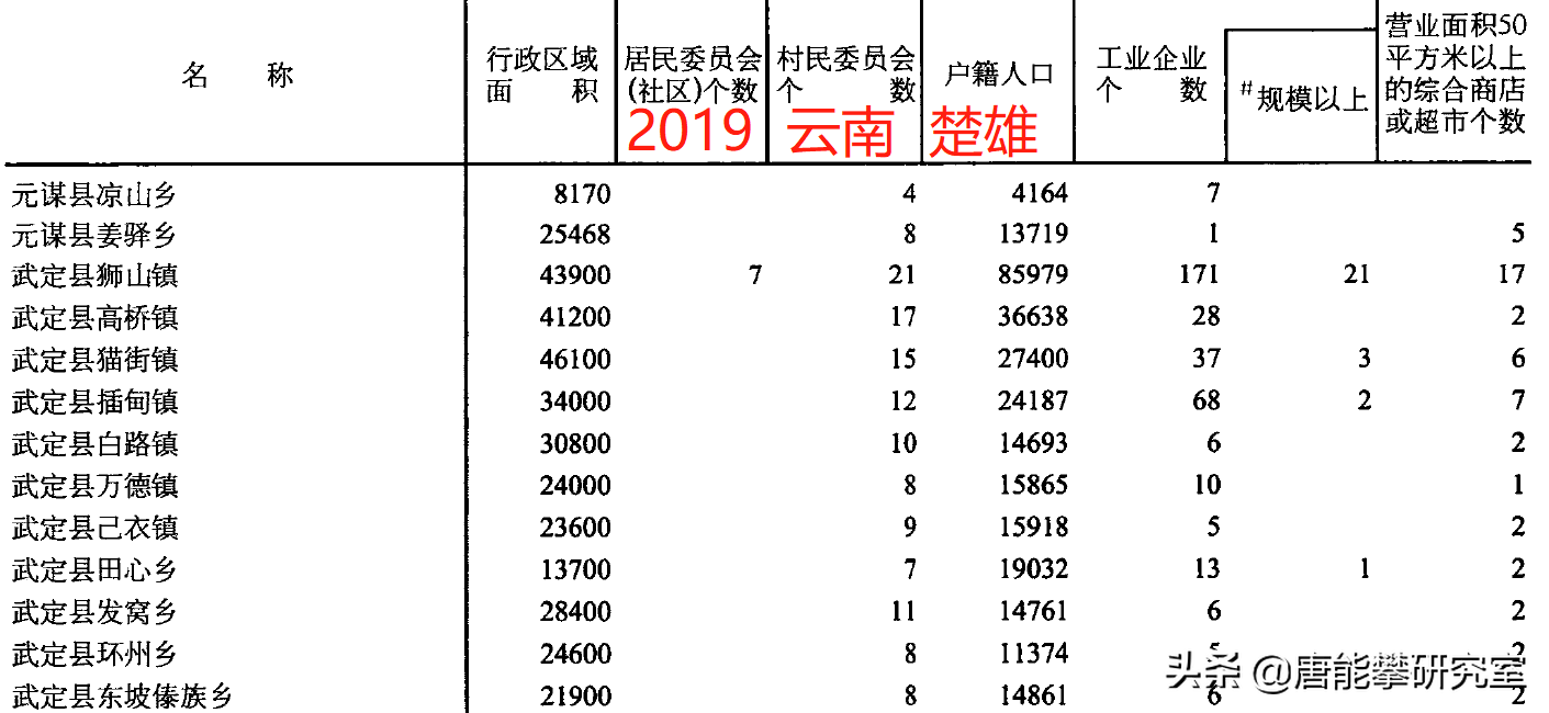 楚雄州楚雄市、南华、双柏33乡镇人口、土地、工业…最新统计