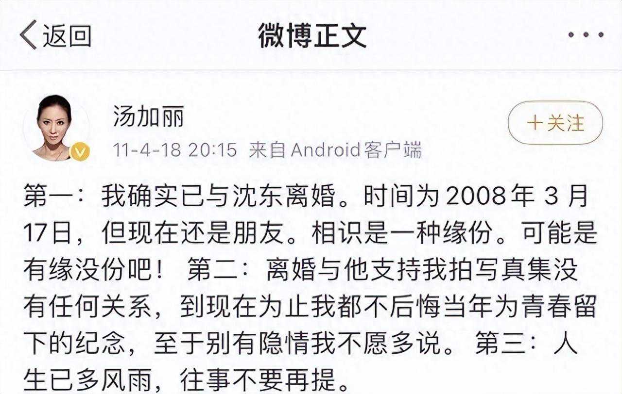 在2007年,汤加丽和沈东正式离婚收场。