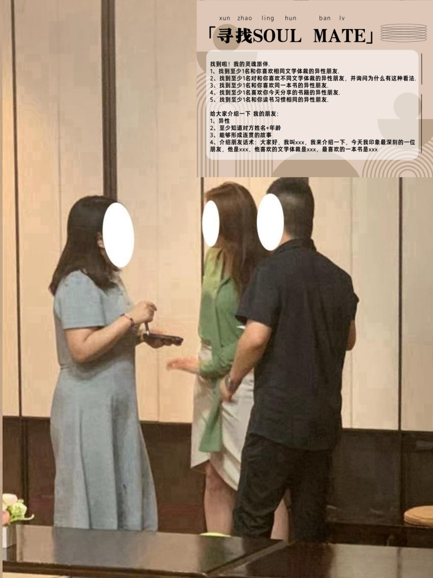 我们的第三期寻找soulmate|交换书籍活动将与9.24日与大家见面。对于活动本身,仪式感的签到让大家融入现场的氛围,感受到了高质量交友局的魅力。