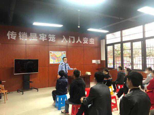 4月17日下午,在南宁市青秀区打传办,20多名涉传人员被传唤到青秀区仙葫开发区的打击传销宣传教育室内,接受反洗脑宣讲教育。