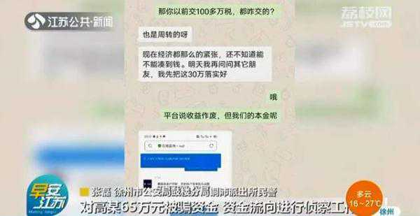 之后,对方便以在做投资理财可以赚大钱为由,诱导受害人下载了一款APP。这个平台是一个搞虚拟货币的平台,高某在这个平台上先后投资了65万元,但是一分钱都没有提出来。