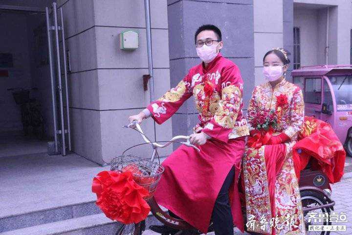 从9号楼到张冠伟所在的19号楼,短短几百米的接亲路,于学凯缓缓地蹬着车,载着张冠伟走了十几分钟,两人享受着这份特殊的行程,尽管婚车简朴得不能再简朴,也没有亲朋好友在身边,但这条安静的行程,对于眼下的疫情而言,最为稳妥与恰当。