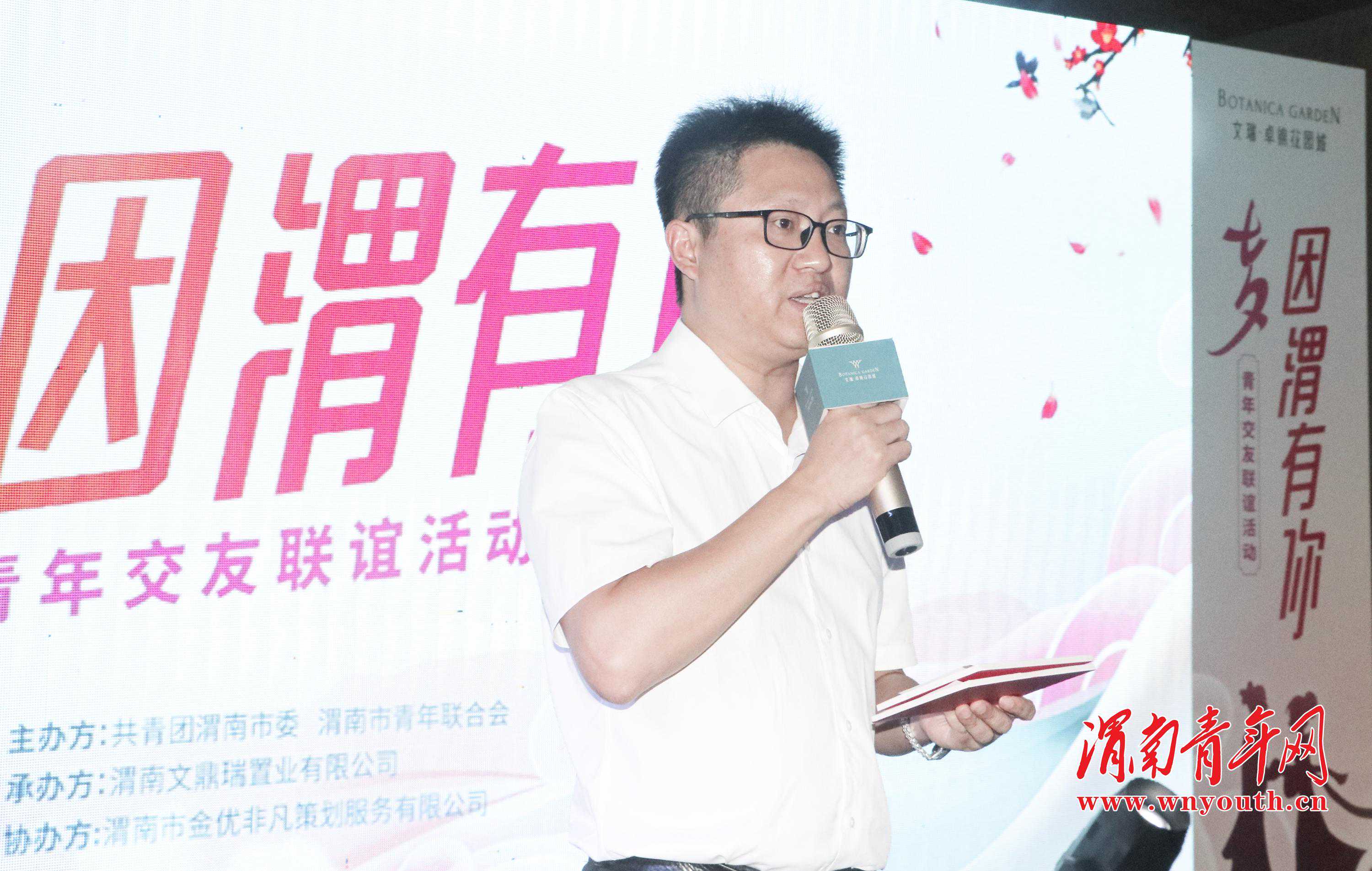 渭南青年网(图/文闵盼龙万林晶武莉丽)“今夕何夕,七月七”,8月25日恰逢中国传统节日-七夕,由共青团渭南市委、渭南市青年联合会主办,渭南文鼎瑞置业有限公司承办的“丝路青缘·七夕因渭有你”青年交友联谊活动,在渭南市文瑞卓锦花园城成功举办。共青团渭南市委副书记李永辉、渭南文鼎瑞置业有限公司总经理廖华出席本次活动。