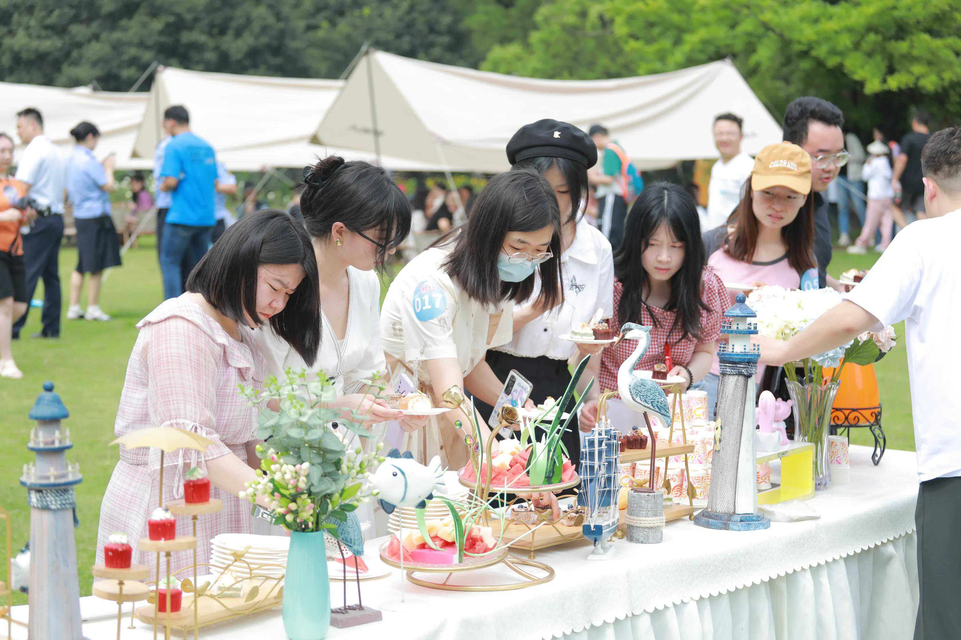 听音乐、diy画扇面、品茶歇当天,落雁景区大草坪上白色天幕一字排开,嘉宾们坐在露营椅上品尝甜品,轻松交谈,民谣乐队歌手悠扬,时髦的派对式交友相亲,让青年男女释放出更多热情。女嘉宾苏苏身着碎花长裙,外形靓丽,她将自己的个人信息一笔一画地写在姻缘签上,悬挂于花团锦簇的姻缘长廊,静候有缘人的到来。