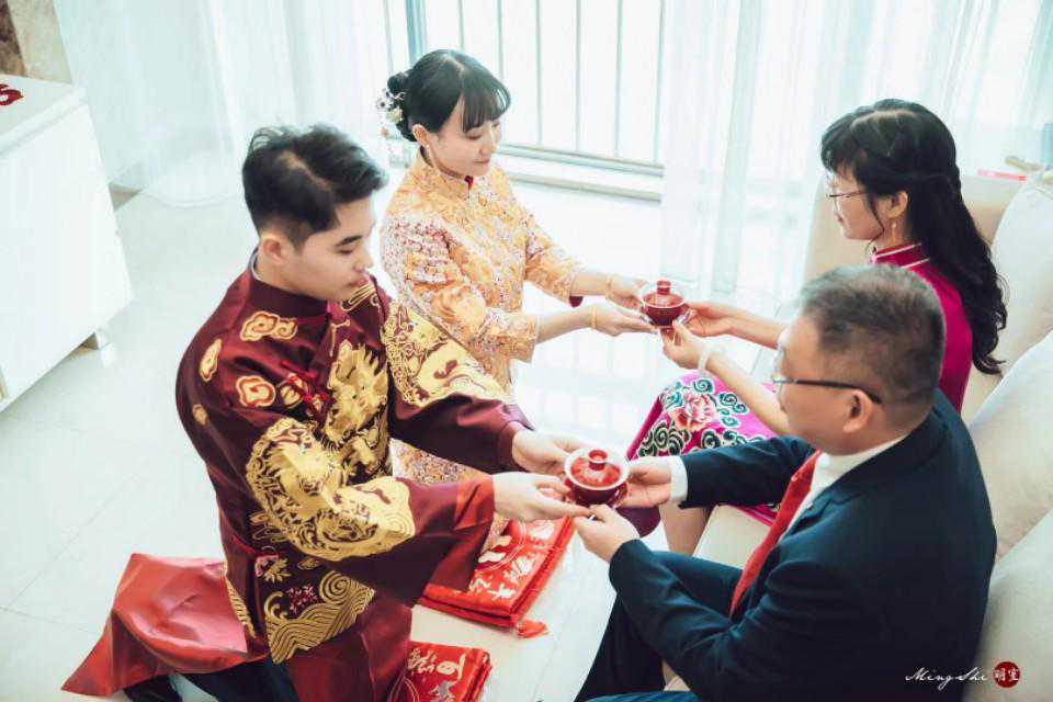 2、迎亲婚礼当天,新郎父母要为新郎和伴郎准备早茶,所谓早茶就是水煮实心汤圆(寓意实实在在、全心全意),新郎和伴郎一般人数成双,食用汤圆也成双(寓意好事成双)。