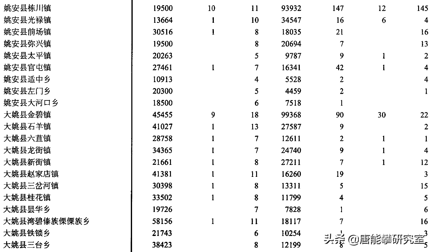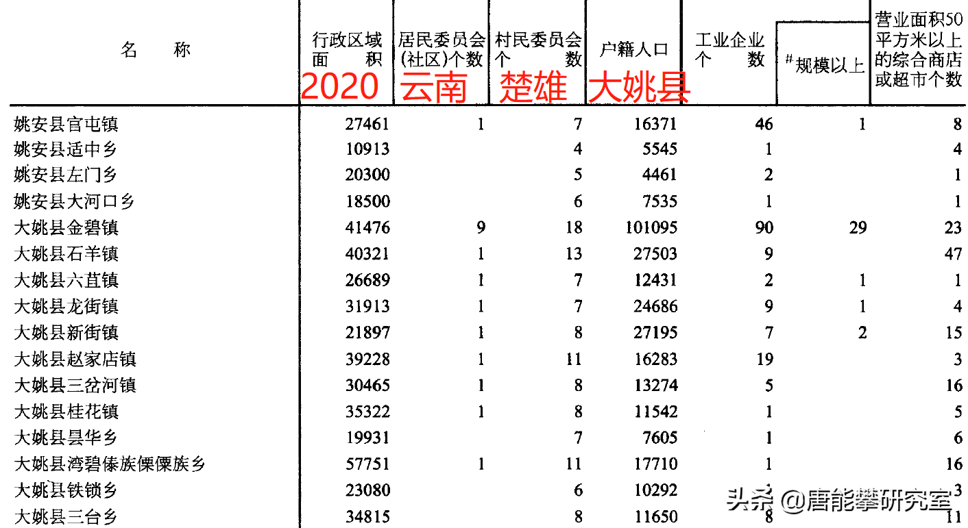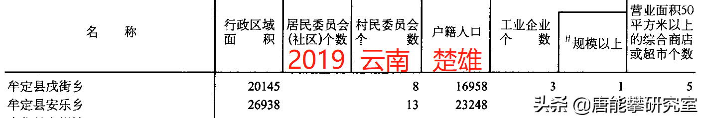 楚雄州楚雄市、南华、双柏33乡镇人口、土地、工业…最新统计