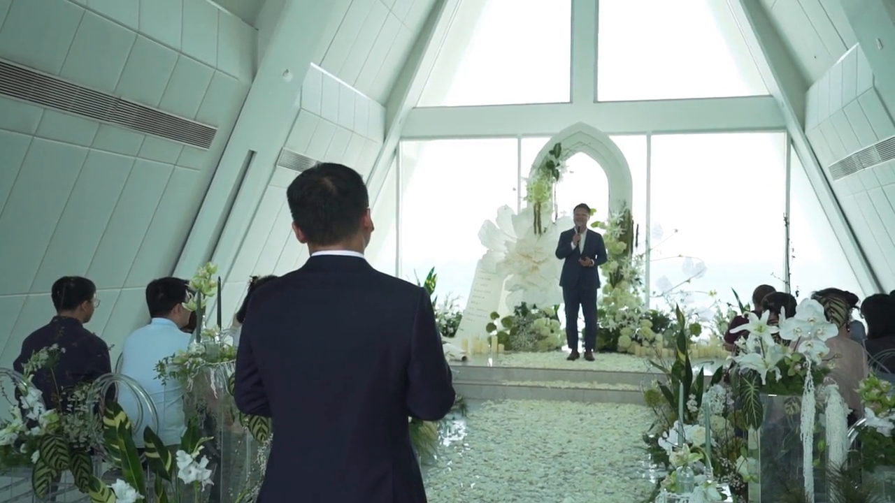 吴青峰对吴璇说的那句话是:如果你想要美丽的夏天,我会偏要面对你。而我觉得对于金阳和月月来说,他们两个的爱情也是那样无与伦比的魅力。我觉得今天现场的所有来宾朋友们,我也希望大家给主持人,给二位新人十五秒钟的时间,轻轻的安静下来,把这段时间去感受他们两个人那一份无与伦比的美丽。