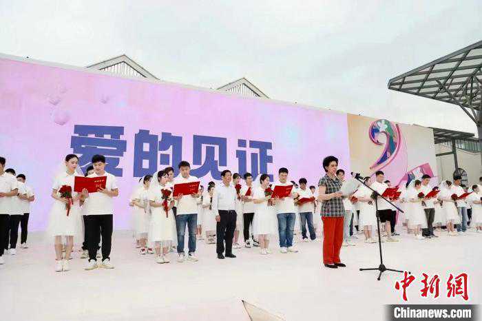 图为在江西南昌青山湖区520Park文创公园星愿广场,52对新人举办集体婚礼。青山湖区融媒体中心供图